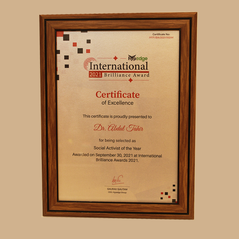 INTERNATIONAL BRILLIANCE AWARDSocial Activist of the Year DR. ABDUL TAHIR